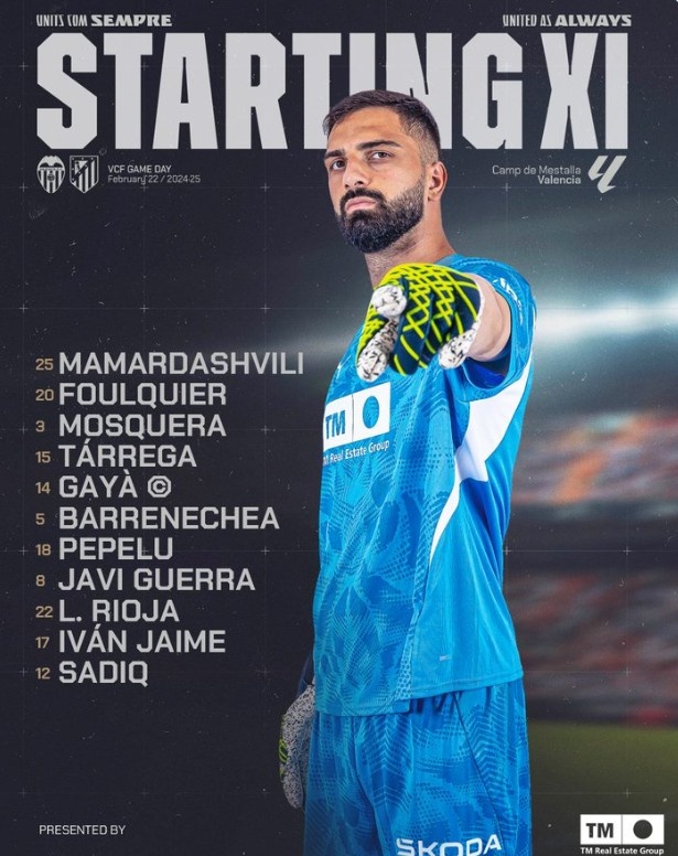 25-馬馬達(dá)什維利、20-福爾奎爾、3-莫斯克拉、15-塔雷加、14-加亞、5-巴倫內(nèi)切亞、18-佩佩魯、8-哈維-格拉、22-里奧亞、17-伊萬(wàn)-海梅、12-薩迪克