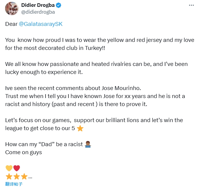 德羅巴在社媒寫(xiě)道