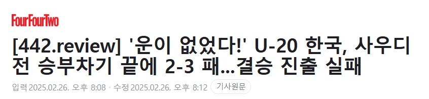 韓國(guó)U-20未能重奪亞洲霸主地位……點(diǎn)球大戰(zhàn)負(fù)于沙特阿拉伯