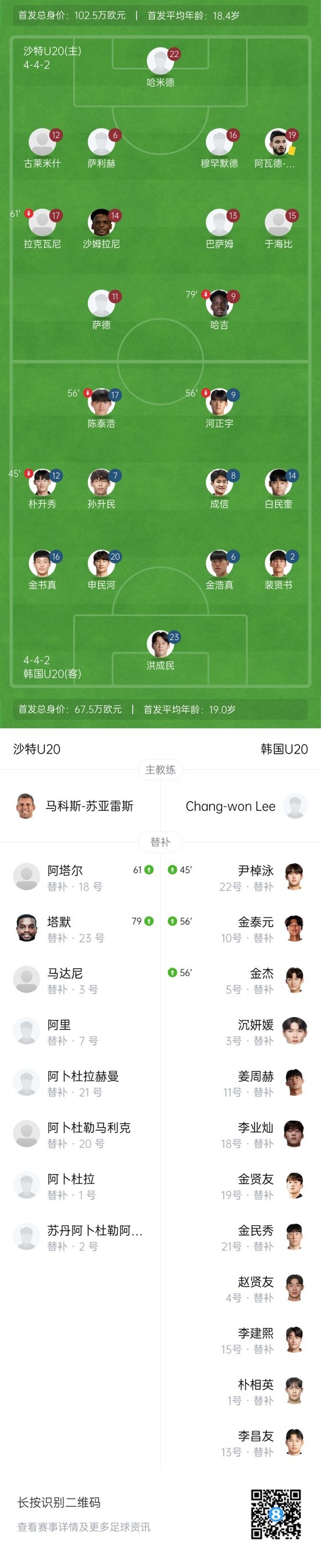 上半場補(bǔ)時1分鐘,U20沙特0-0韓國U20。