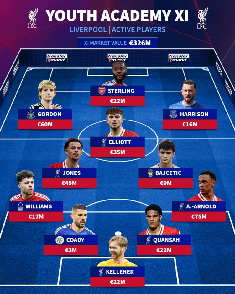 利物浦青訓(xùn)出品球員最佳陣↓(括號內(nèi)為球員目前效力球隊(duì))