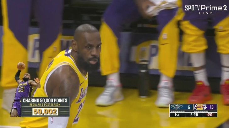 今日NBA常規(guī)賽,鵜鶘對陣湖人。40歲的湖人球星詹姆斯達成生涯50000分(常規(guī)賽+季后賽)。