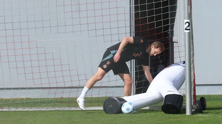 該媒體指出,拜仁大部分球員都選擇留在室內(nèi)進行恢復(fù)性訓(xùn)練,但凱恩和奧利塞選擇來到訓(xùn)練場加練射門。盡管沒有門將球員協(xié)助,但他們借用了兩個充氣玩偶在球門位置鎮(zhèn)守。