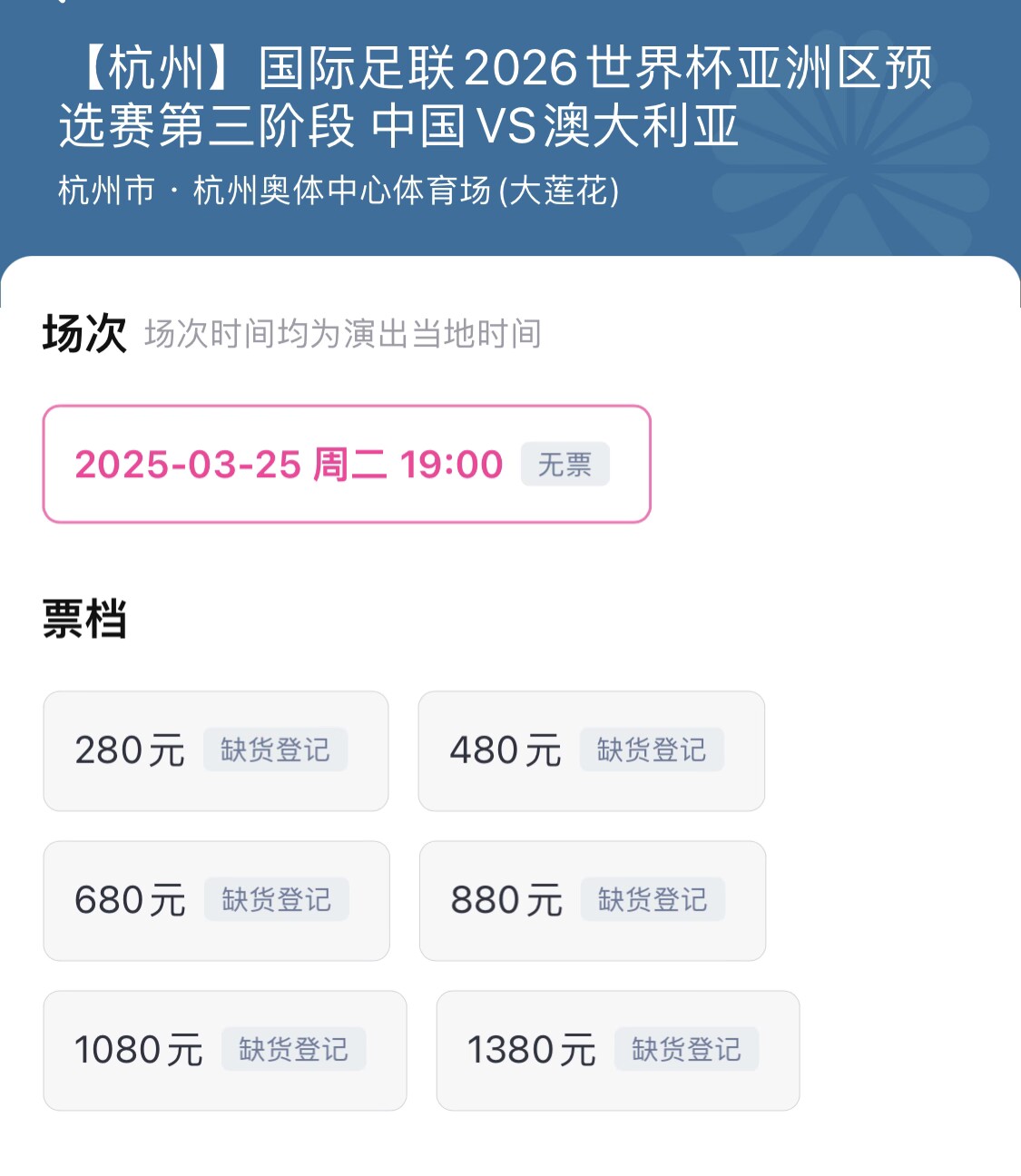 3月25日18強(qiáng)賽國足vs澳大利亞門票早已售罄,官方票務(wù)信息顯示,3月11日0:00起停止退票。這個時間點(diǎn)將成為最后的“撿漏”(回流票)的機(jī)會。 標(biāo)簽: 足球 中超 中國足球 中國男足