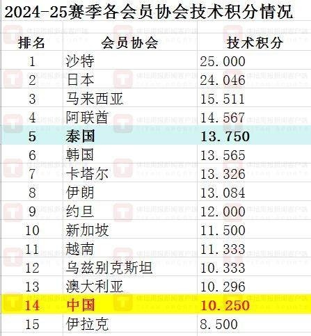 在各隊的技術(shù)積分揭曉后再累加,然后除以參賽隊數(shù),得出的平均分數(shù)就是該會員協(xié)會在2024-25賽季的技術(shù)積分。