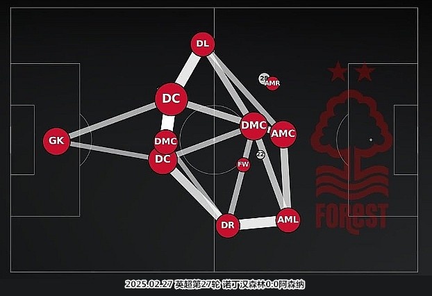 過去兩段成功的執(zhí)教經(jīng)歷,努諾-桑托都是主打三中衛(wèi)/五后衛(wèi)陣型。來到諾丁漢森林后,葡萄牙人根據(jù)現(xiàn)有人員特點,改變了后防和中場的力量配比,研發(fā)了極具特點的451陣型。