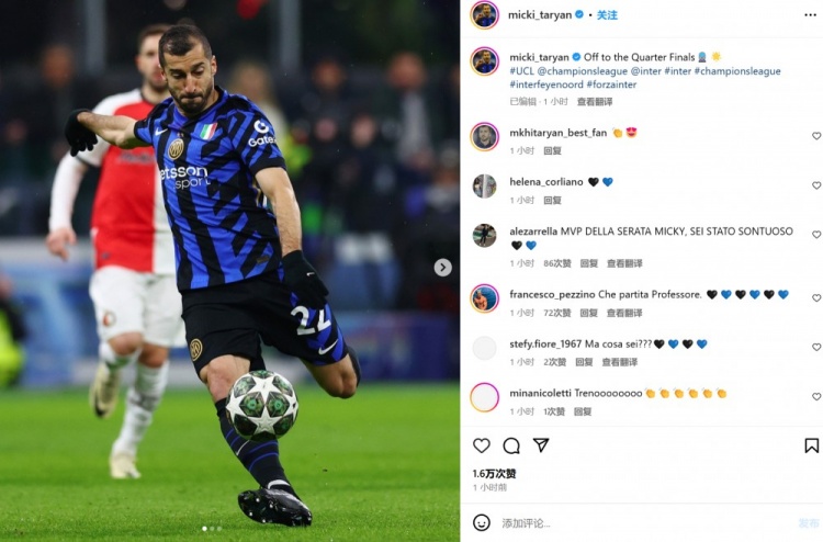 3月12日訊 國米在本輪歐冠主場(chǎng)2-1再次擊敗費(fèi)耶諾德,他們將在歐冠八強(qiáng)戰(zhàn)和拜仁相遇。隊(duì)內(nèi)多位大將也通過社媒曬照慶祝晉級(jí)。