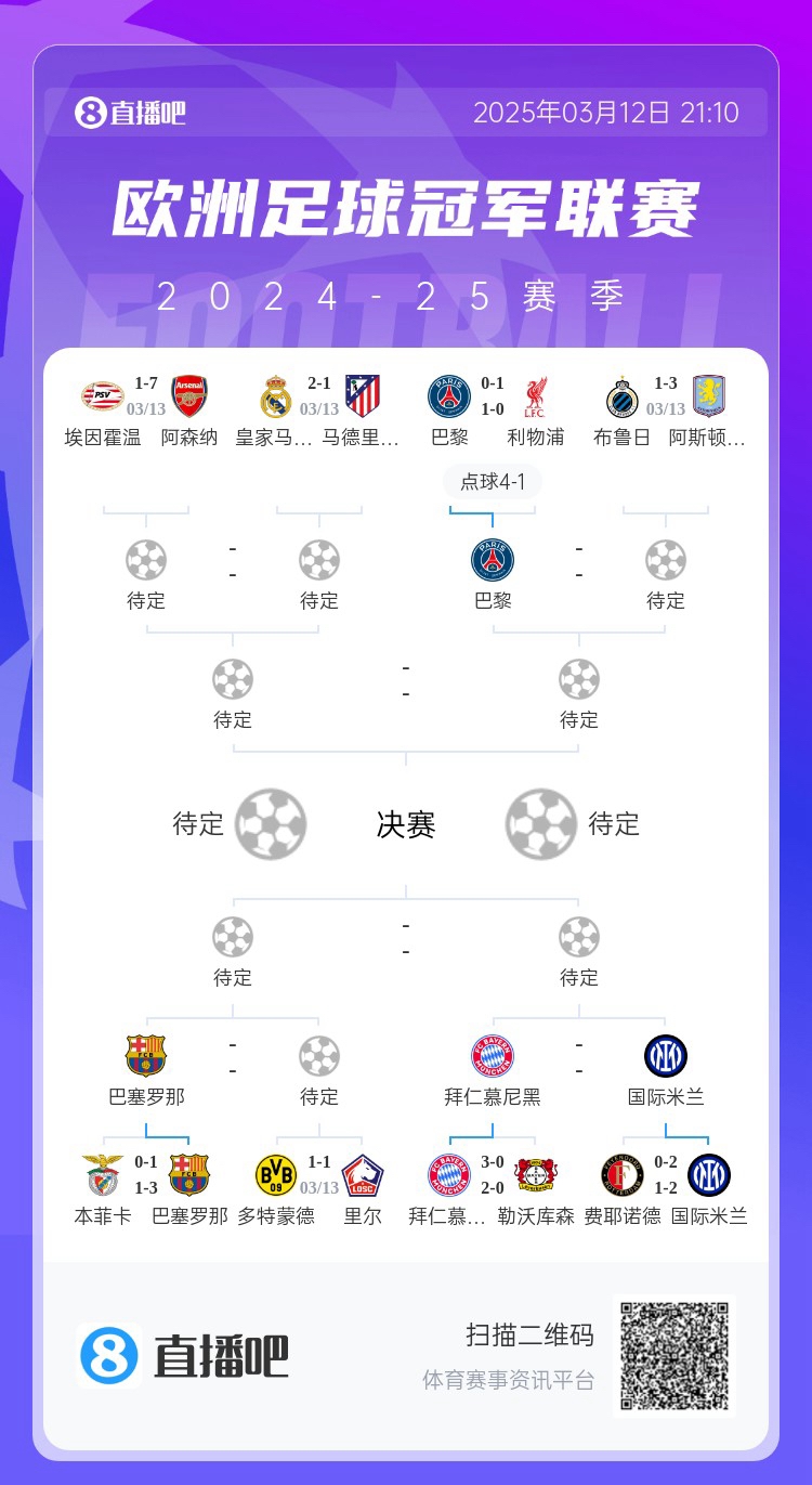03月12日訊 北京時間明天凌晨,歐冠1/8決賽次回合比賽展開第2日的交鋒,8支球隊將決出最后4個晉級名額。馬德里德比再次上演!槍手、多特、維拉悉數(shù)出戰(zhàn)!