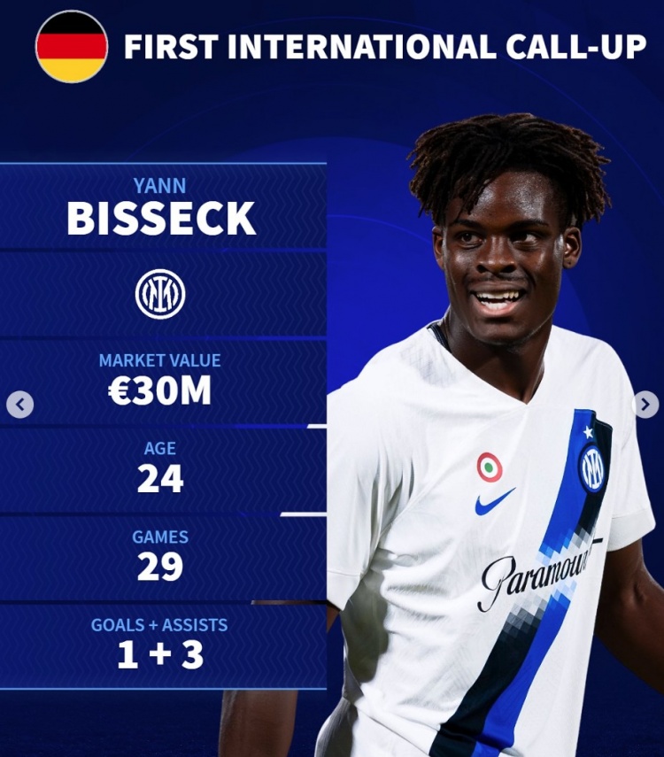 比塞克(國米,德國),3000萬歐,24歲。29場1球3助攻