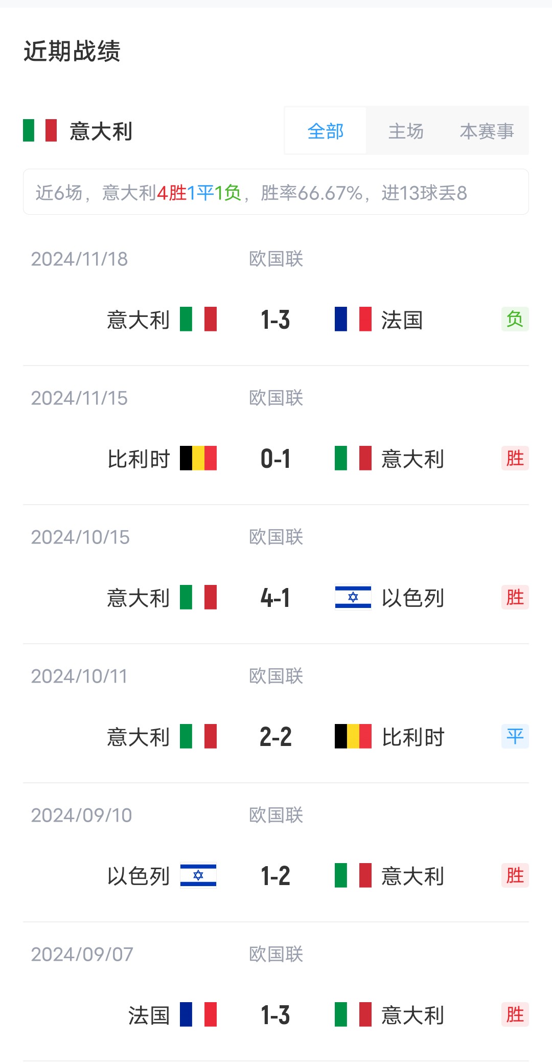 在歐國(guó)聯(lián)小組賽中,意大利排名B組第2,德國(guó)排名C組第1;雙方近6場(chǎng)直接對(duì)話(huà)中,意大利取得了1勝4平1負(fù)的戰(zhàn)績(jī)。兩隊(duì)最近一次交手,是在2016年11月16日,友誼賽意大利0-0戰(zhàn)平德國(guó)。