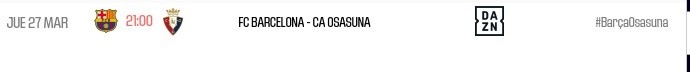 3月21日訊 西甲官方確認,巴薩對陣奧薩蘇納的第27輪補賽將于北京時間3月28日凌晨4:00舉行。