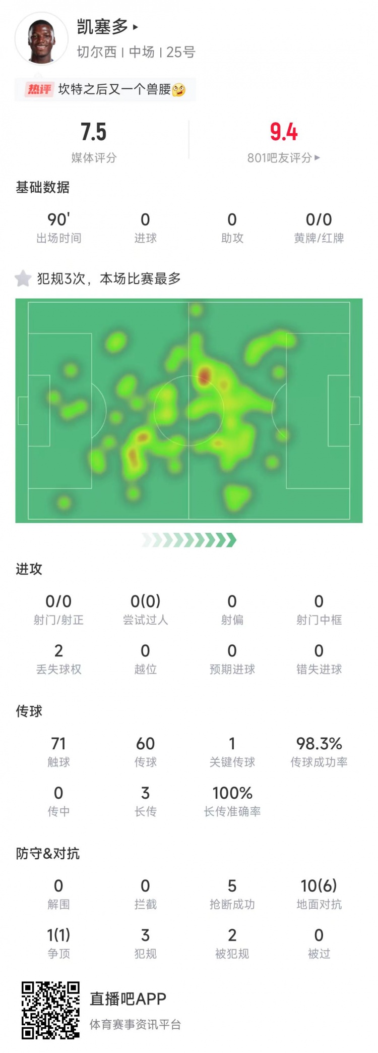 凱塞多當(dāng)選本場比賽最佳球員,切爾西官方社媒曬出他領(lǐng)獎的照片,配文:“這個人的表現(xiàn)太棒了。”