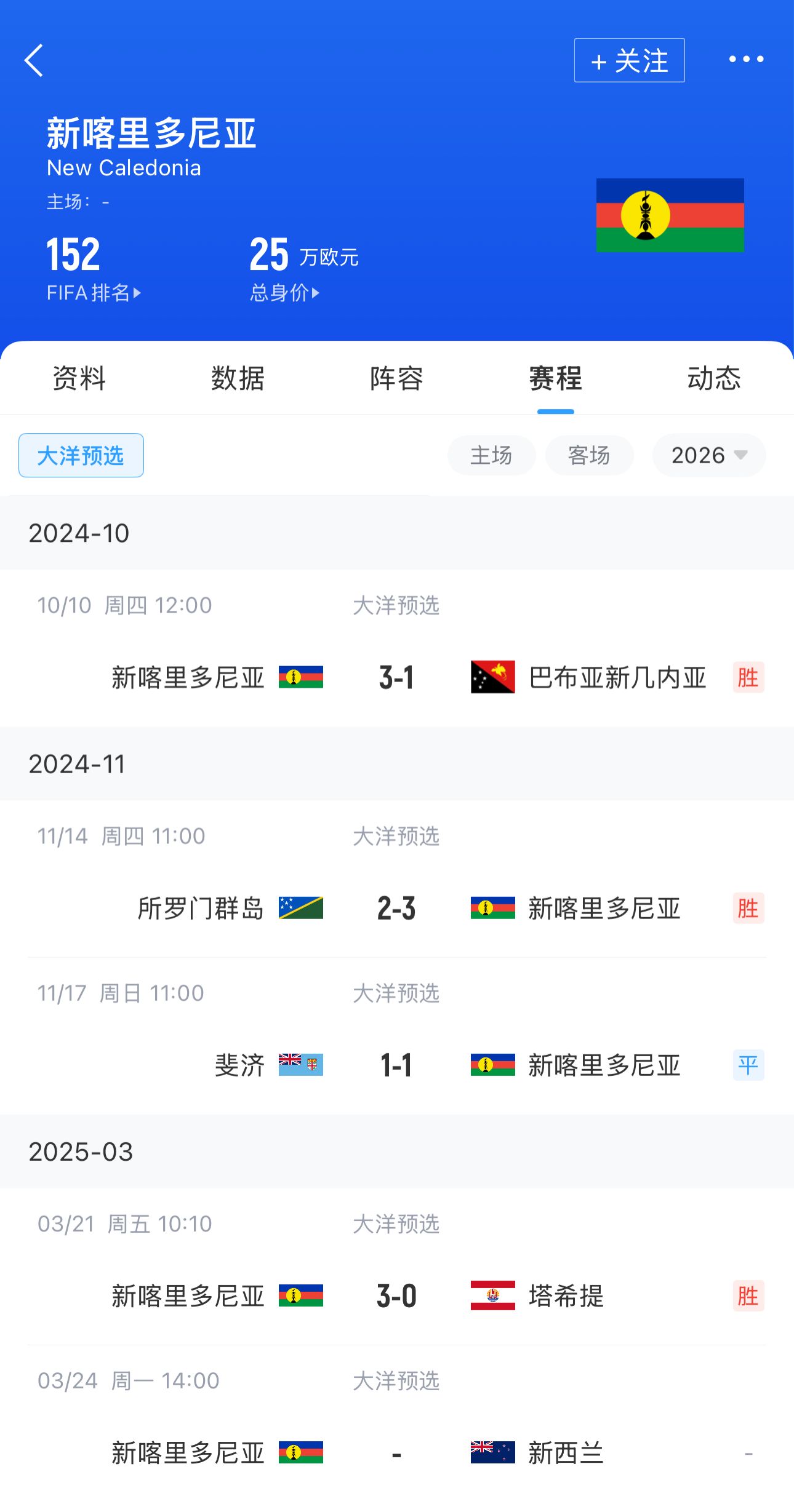 03月24日訊 今天14:00,大洋預(yù)選決賽開打,新喀里多尼亞對陣新西蘭,勝者將拿到大洋洲的直通名額,直接晉級2026世界杯。