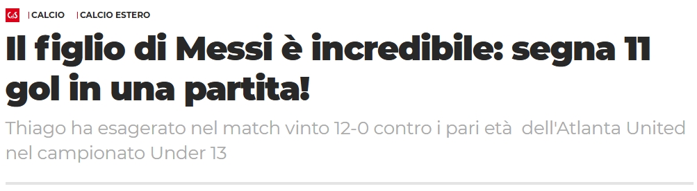 《羅體》標(biāo)題:梅西的兒子太厲害了,一場(chǎng)比賽轟11球