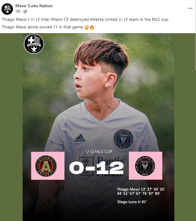 這篇新聞來(lái)自球迷號(hào)Messi Cules Nation的杜撰,圖中顯示的U13 MLS CUP賽事近期并沒(méi)有進(jìn)行,24-25賽季美職聯(lián)青少年季后賽時(shí)間并不是在本月。官網(wǎng)的信息中,邁阿密U13隊(duì)伍最近的比賽也沒(méi)有對(duì)陣亞特蘭大聯(lián)。