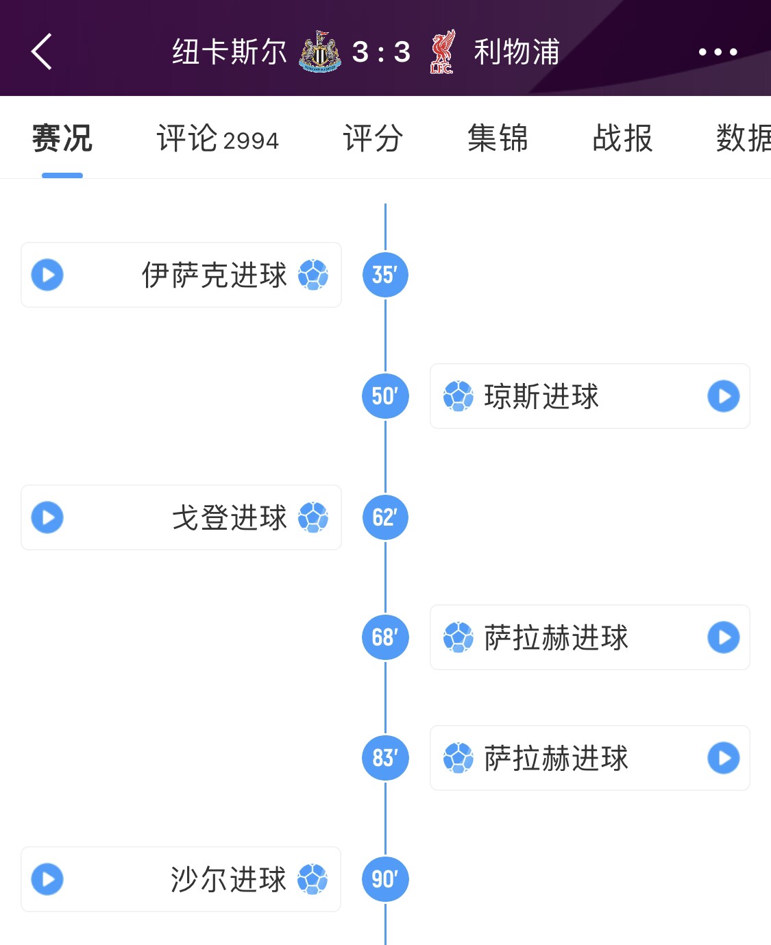 本賽季英超首回合較量,紐卡與利物浦戰(zhàn)成3-3。