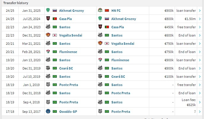 根據(jù)《轉(zhuǎn)會市場》資料,卡多索已經(jīng)由格羅茲尼租借加盟河南隊,球員目前的身價是90萬歐元。