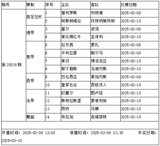 傳足勝負(fù)彩第25018期競猜賽事重點關(guān)注豪門球隊:英足總杯賽事中利物浦和熱刺將分別對陣普利茅斯和維拉,意甲領(lǐng)頭羊那不勒斯在主場面對烏迪內(nèi)斯,拉齊奧主場迎戰(zhàn)蒙扎。