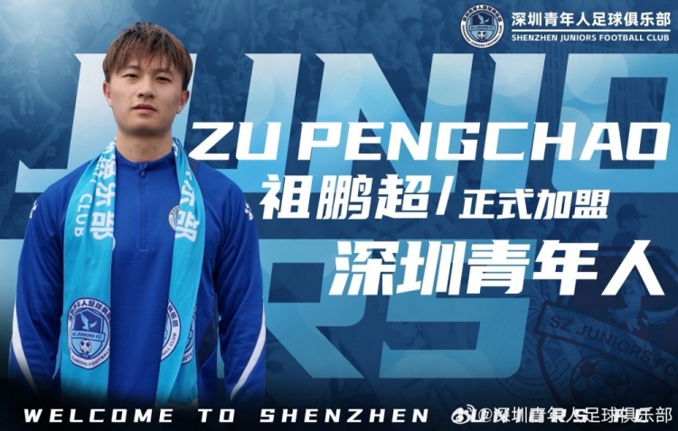 經(jīng)與球員本人友好協(xié)商并達成一致,祖鵬超正式加盟深圳青年人足球俱樂部。