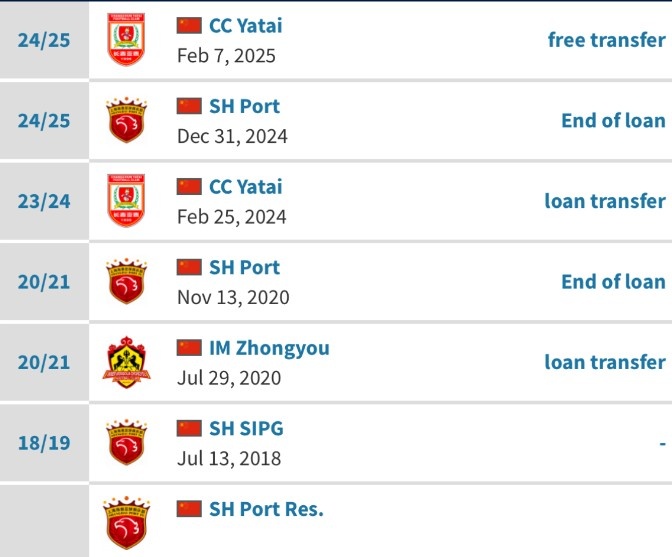李申圓的個人頁面中顯示,今天他已經以自由身轉會加盟長春亞泰。