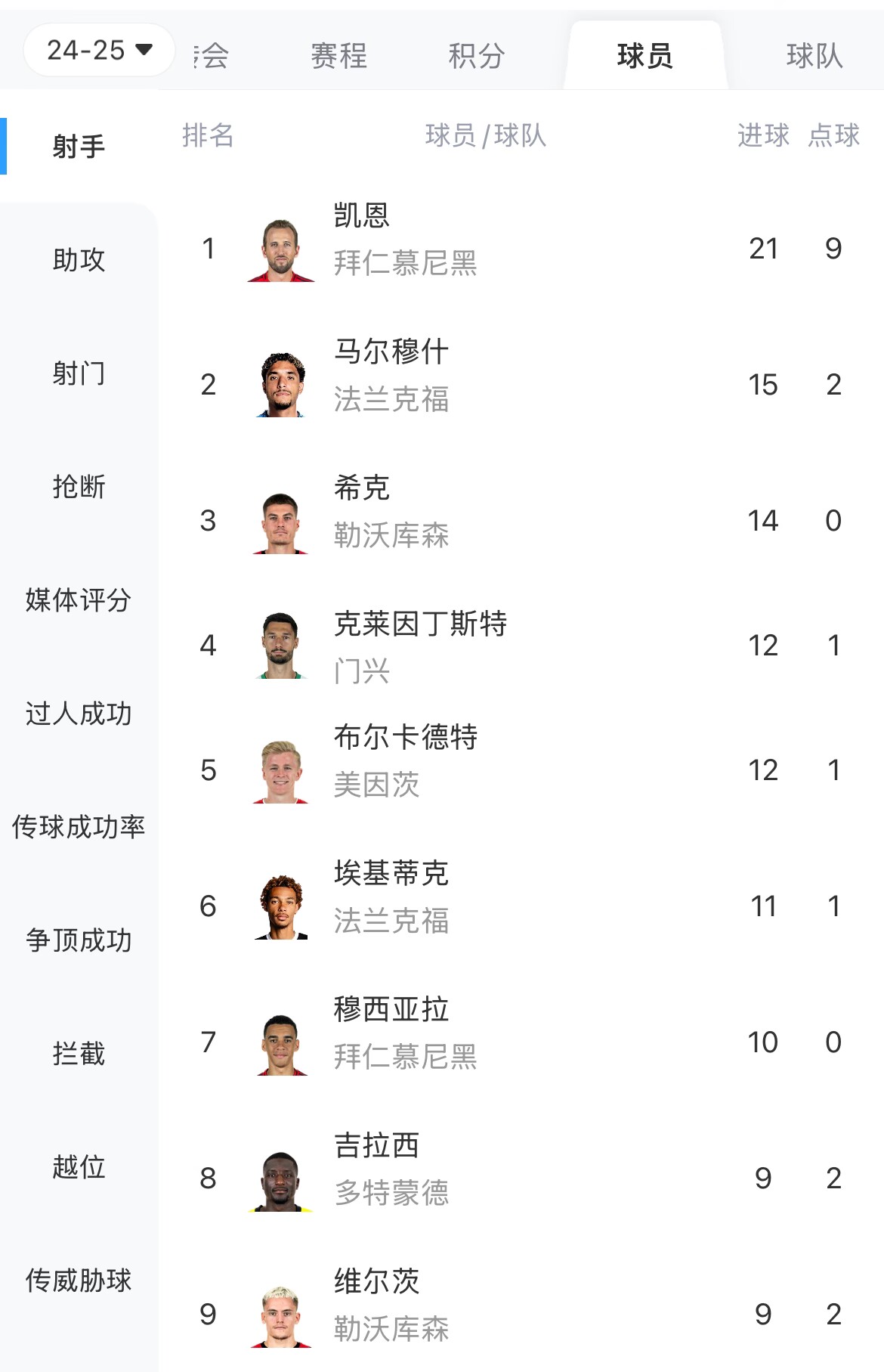 凱恩本場(chǎng)點(diǎn)射雙響,聯(lián)賽已打進(jìn)21球,暫6球優(yōu)勢(shì)領(lǐng)跑射手榜。
