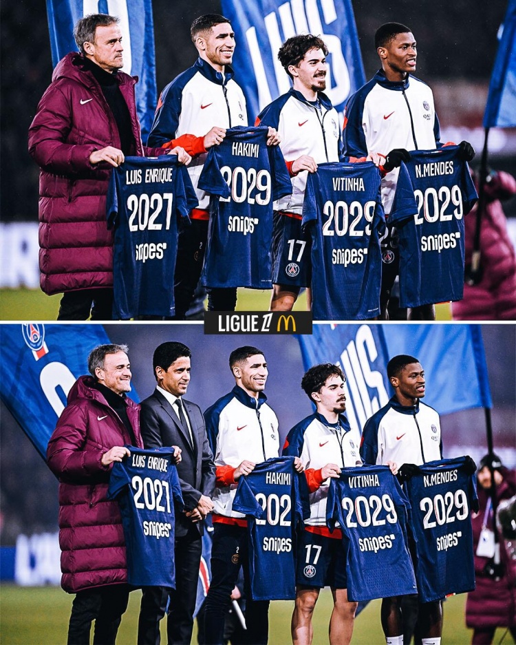 續(xù)約的球員包括扎格、姆巴耶、努諾-門德斯、阿什拉夫、維蒂尼亞和漢納赫,扎格續(xù)約至2028年,漢納赫和姆巴耶則續(xù)約至2027年,兩人都是首份職業(yè)合同。阿什拉夫、維蒂尼亞和門德斯續(xù)約至2029年,主帥恩里克續(xù)約至2027年。
