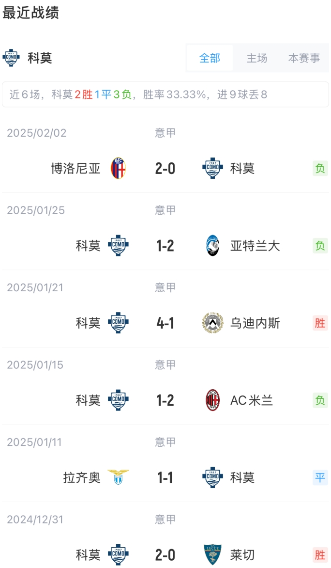 2月8日訊 意甲第24輪,科莫主場迎戰(zhàn)尤文比賽即將打響。賽前首發(fā)出爐。
