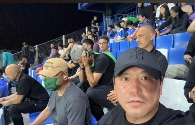 2月10日訊 北京國(guó)安目前正在泰國(guó)進(jìn)行冬訓(xùn),今天國(guó)安領(lǐng)隊(duì)隋東亮?xí)癯隽饲蜿?duì)教練組前往泰超現(xiàn)場(chǎng)觀(guān)賽的照片。