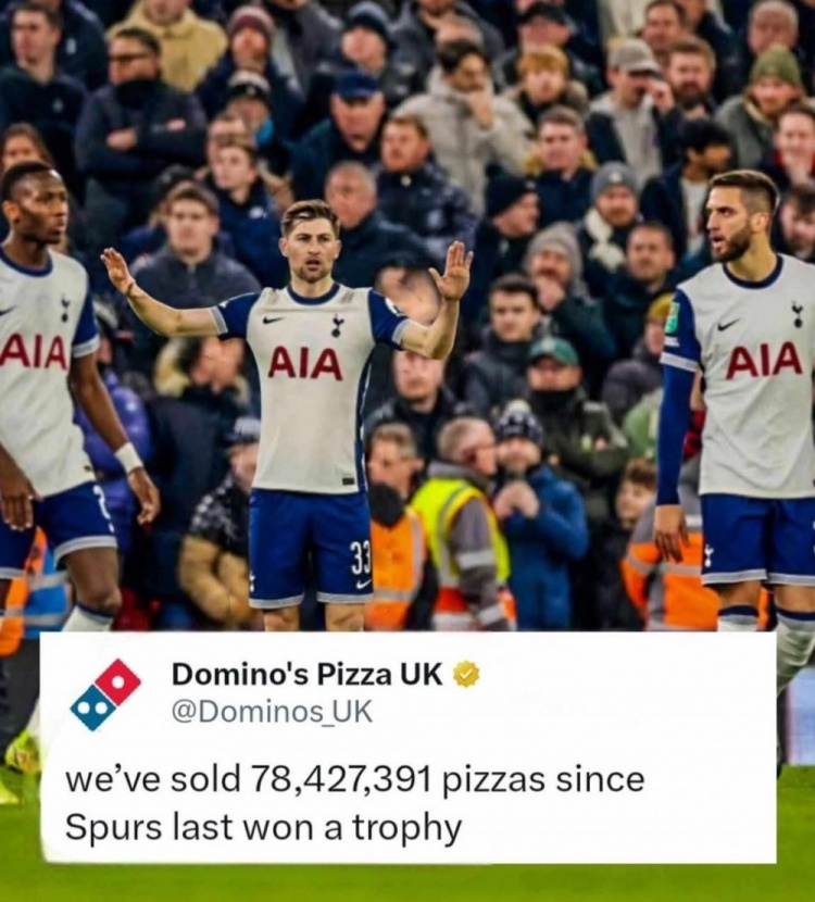 自熱刺上次贏得獎杯以來,我們已經(jīng)售出了78427391個(gè)披薩~