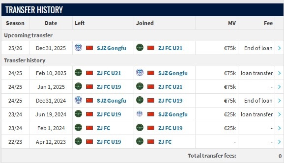 轉(zhuǎn)會(huì)歷史方面,徐俊馳去年夏天就曾租借至石家莊功夫,今天再次從浙江隊(duì)租借加盟石家莊功夫,租期至今年年底。