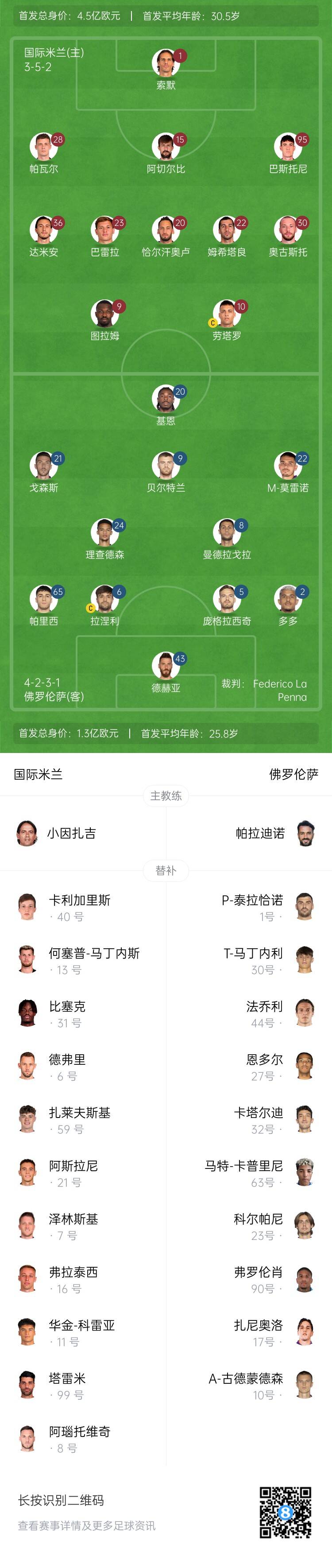 國米vs佛羅倫薩首發(fā):勞塔羅、圖拉姆先發(fā) 德赫亞、小基恩出戰(zhàn)