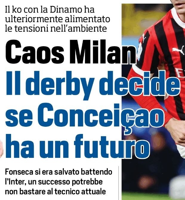 輸給薩格勒布迪納摩的比賽引爆了這場危機(jī),現(xiàn)在米蘭陷入了全面的混亂,每個(gè)人都開始受到評估。就跟往常一樣,教練在這種情況下是最危險(xiǎn)的人,雖然孔塞桑上任僅一個(gè)月就奪得了一座冠軍獎(jiǎng)杯,但他現(xiàn)在面臨的風(fēng)險(xiǎn)最大。
