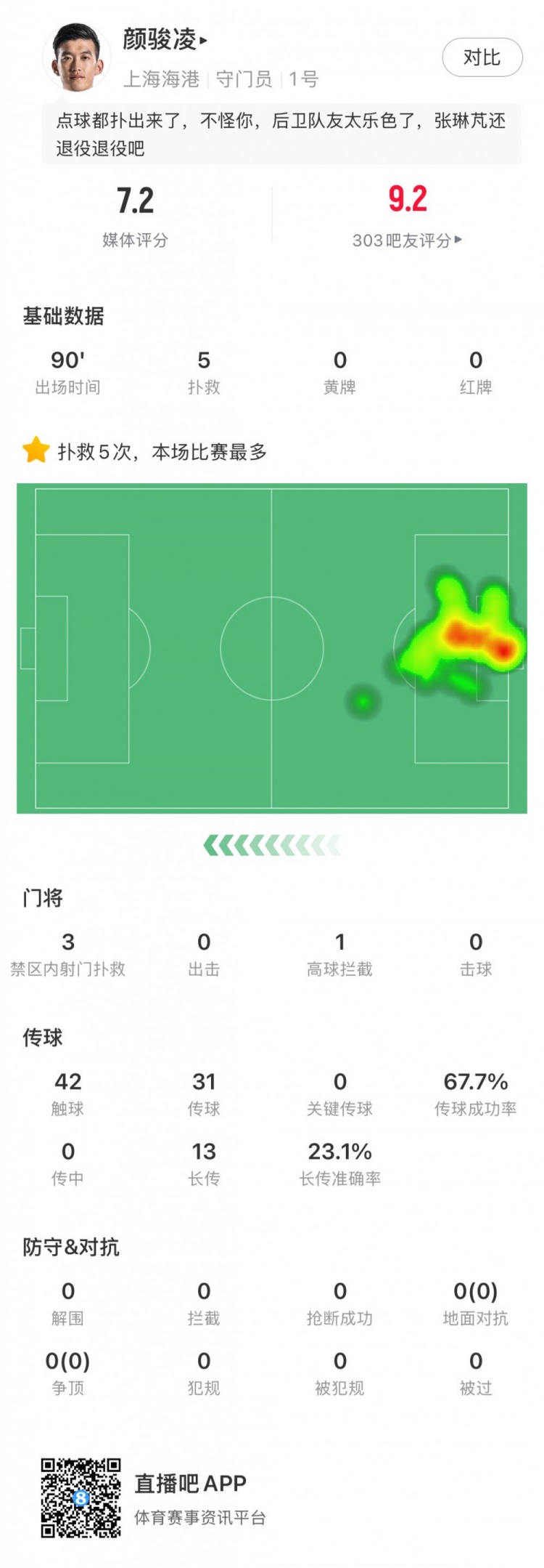 全場(chǎng)比賽顏駿凌貢獻(xiàn)數(shù)次撲救,還將大迫勇也的點(diǎn)球拒之門(mén)外,但仍無(wú)力幫助球隊(duì)扭轉(zhuǎn)頹勢(shì),賽后他獲得隊(duì)內(nèi)最高的7.2分。