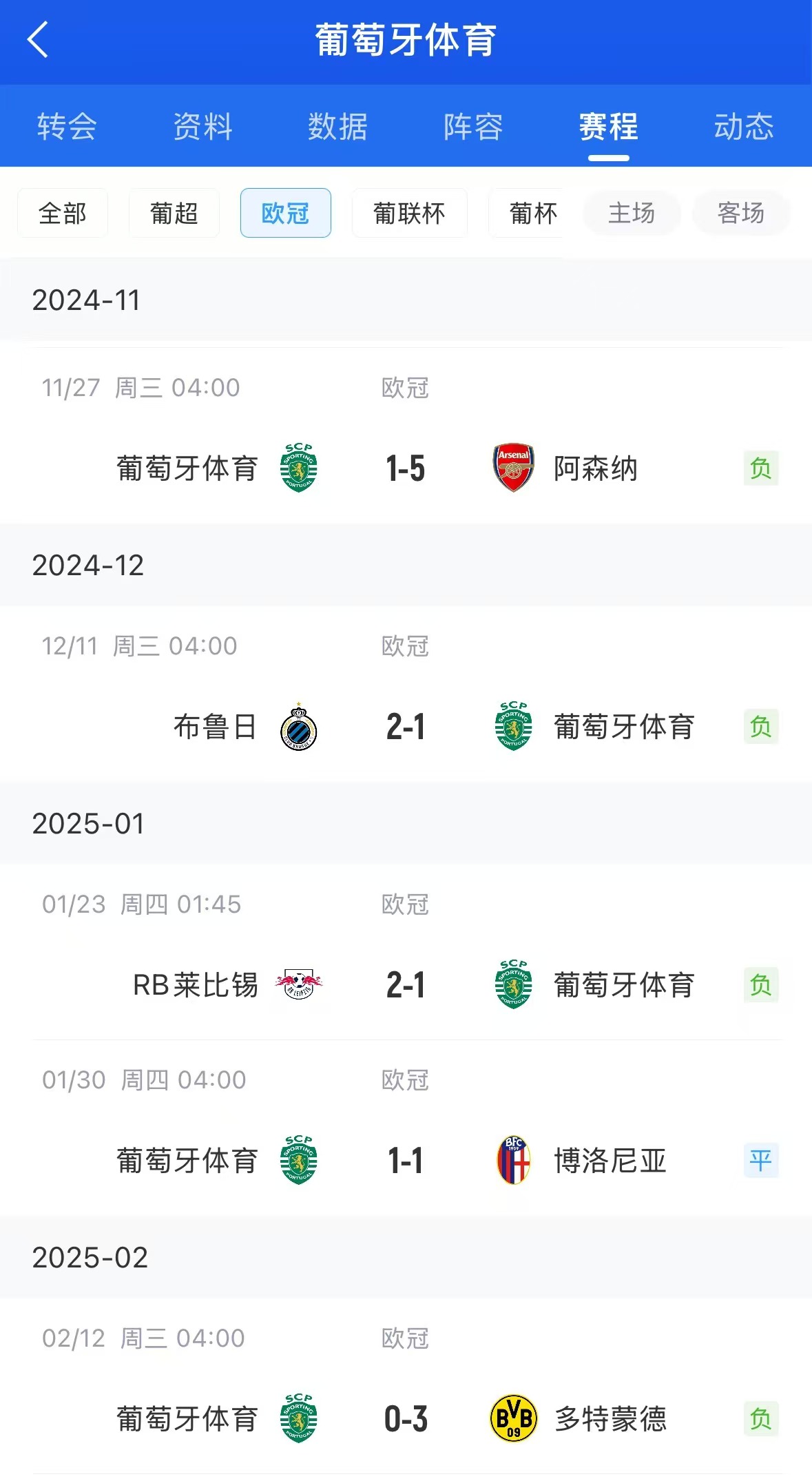02月12日訊 歐冠淘汰賽附加賽首回合,葡萄牙體育主場0-3不敵多特。球隊在阿莫林離任后,5場歐冠比賽1平4負未嘗一勝。