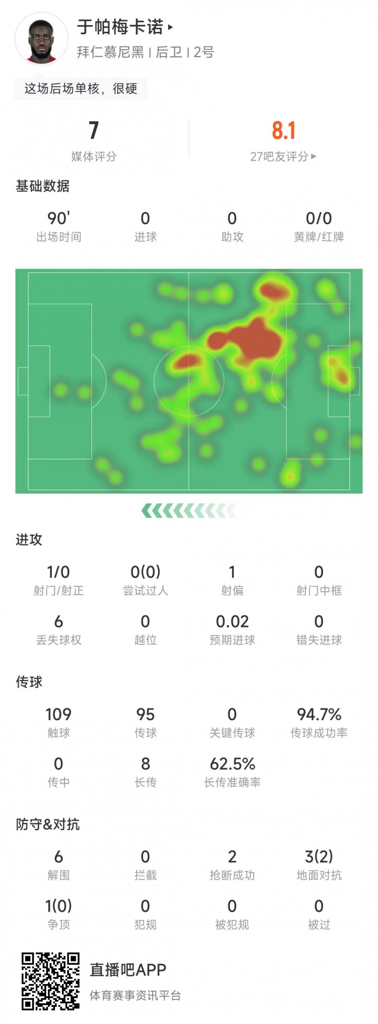 6次解圍+2次搶斷!于帕梅卡諾當(dāng)選拜仁vs凱爾特人全場最佳球員
