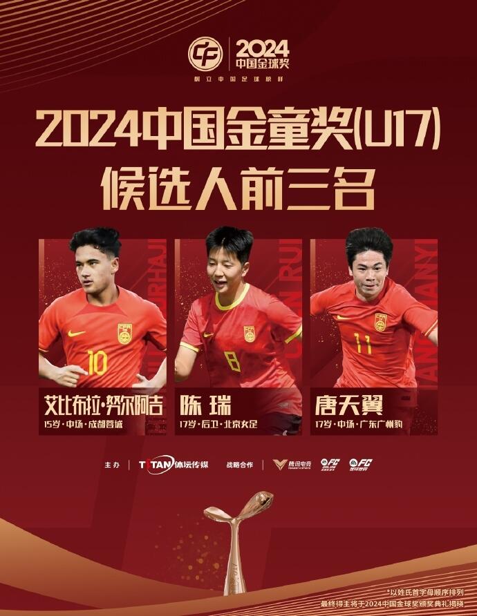 02月13日訊 2024中國金球獎頒獎儀式將于2月13日在杭州舉行,現(xiàn)場播放的金童獎(U17)三人候選宣傳片顯示,近期陷入出軌、賭球風波的唐天翼被移除,魏祥鑫“遞補”。